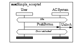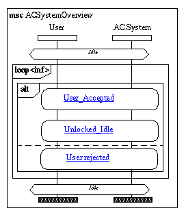 The reader should also notice that an MSC reference has only one entry and one exit. Thus there are no ways to continue possible alternatives of User_Accepted into Unlocked_Idle (there are no alternatives in these diagrams here). 1