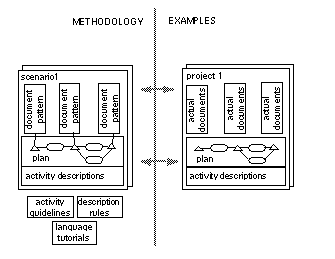 In the Process theme a number of development processes are defined. The scenarios are examples of exactly these processes. Each scenario is a project with concrete descriptions and activities.