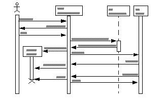 The sequence diagram shows if the object is activated with a rectangular lifeline. When an object is not active, just existing, it has a dashed lifeline. An X at the end of the lifeline denotes that the object cease to exist, and can not be activated again.